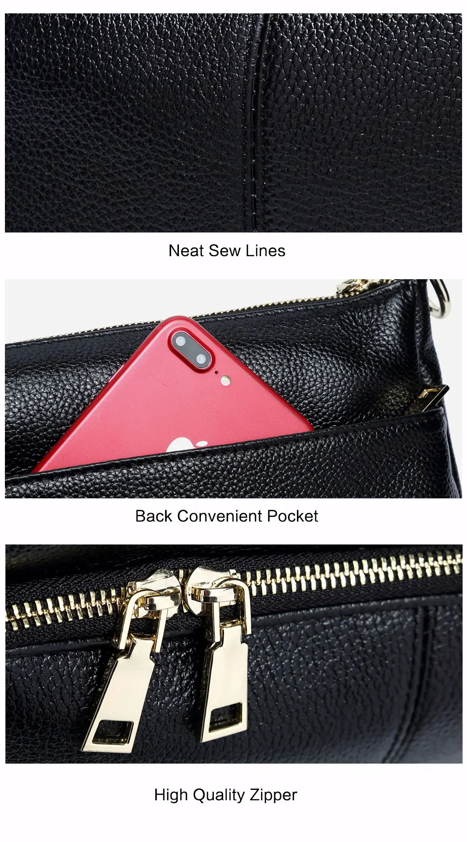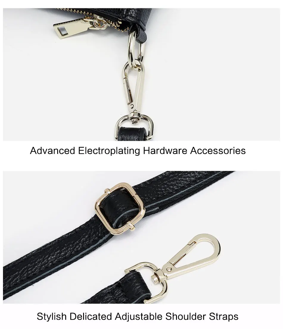 Zency Elegant Women Handbag 100% Genuine Leather Ladies Shoulder Bag Crossbody Messenger Purse Fashion Hobos Black High Quality