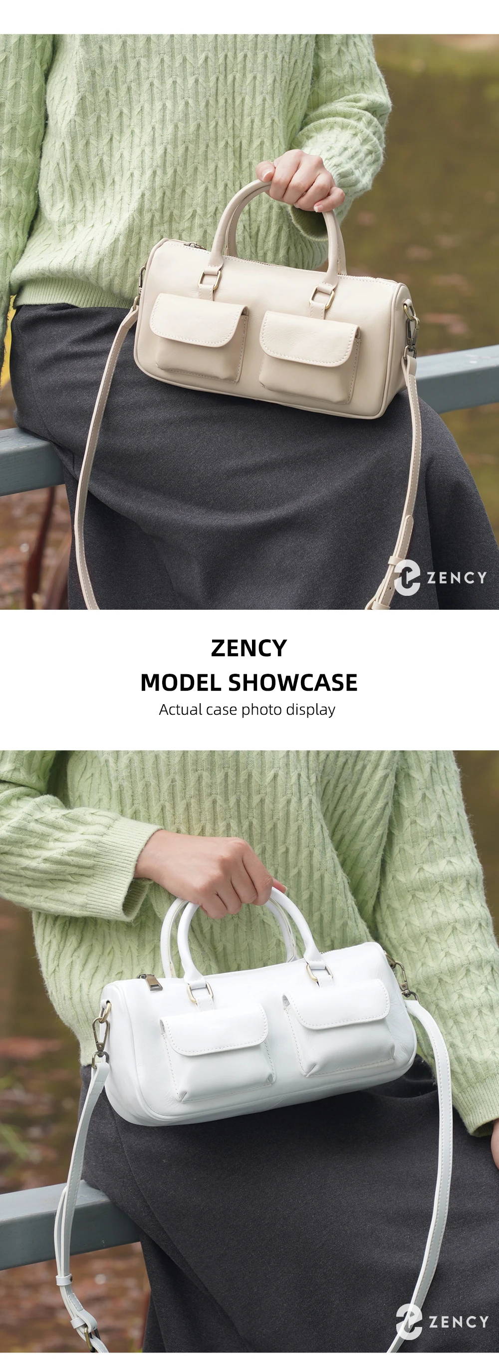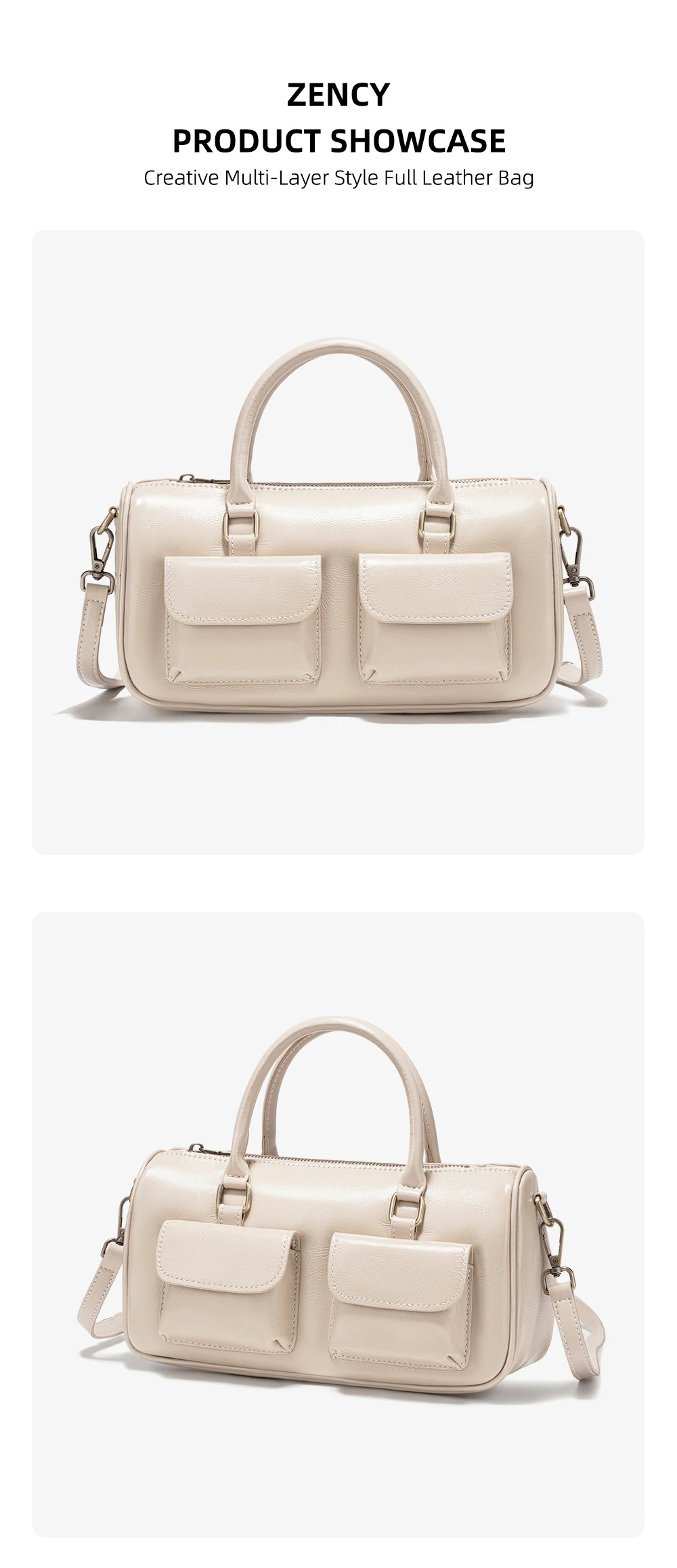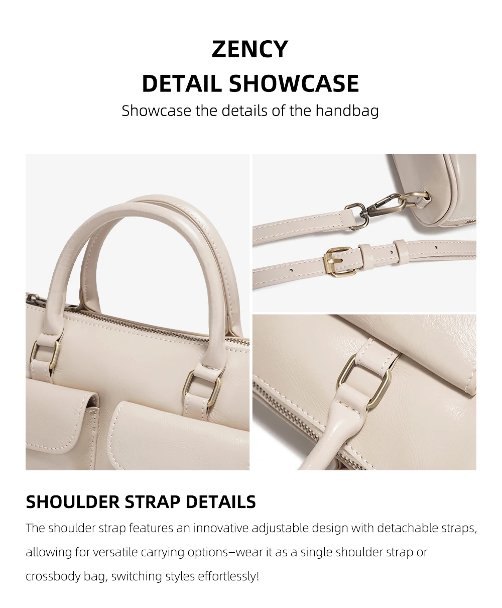 Zency Cowhide Leather Designer Handbag Women Shoulder Bag Multi-functional Crossbody Bags
