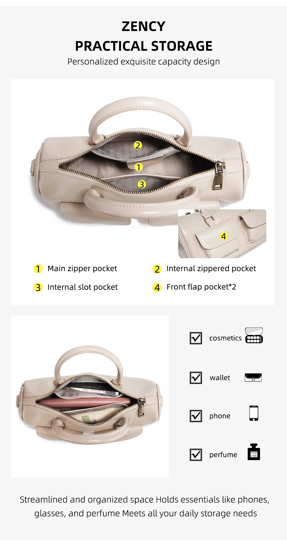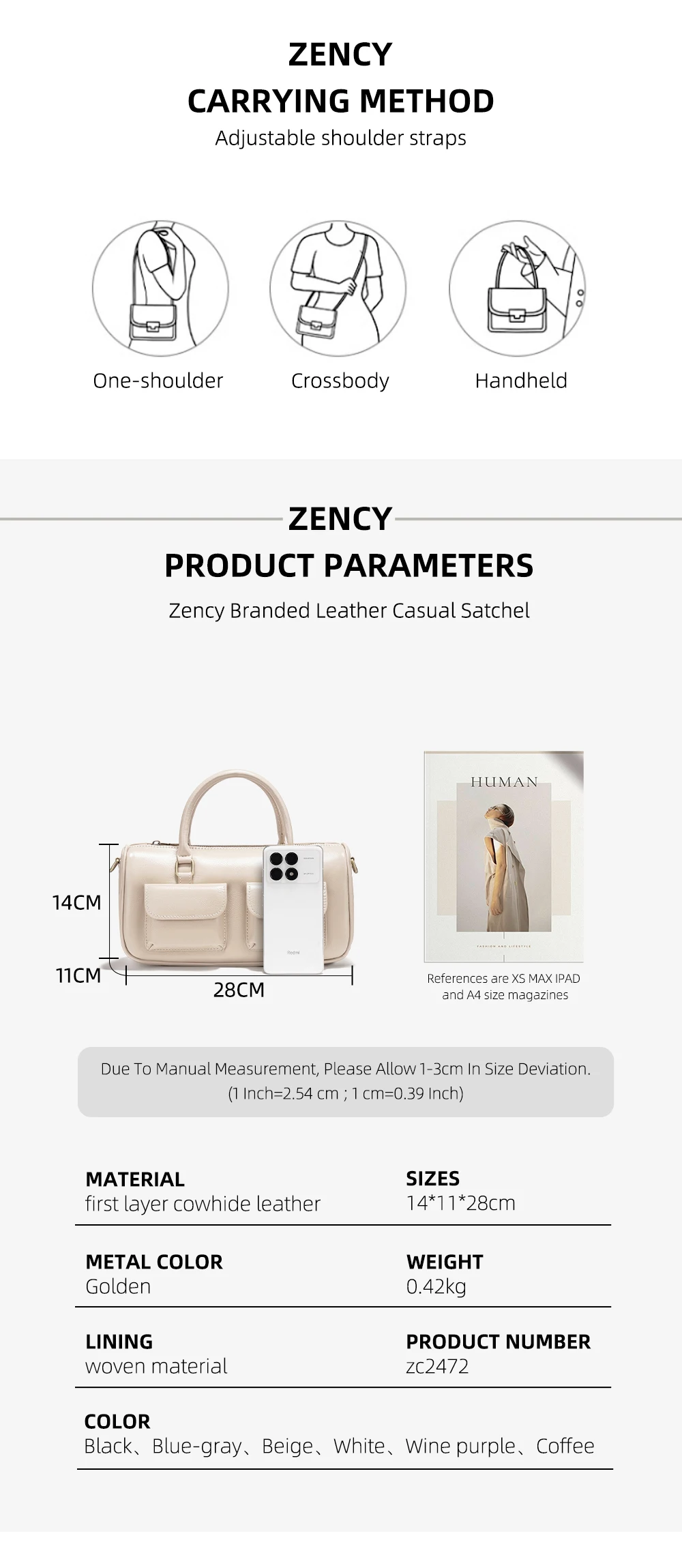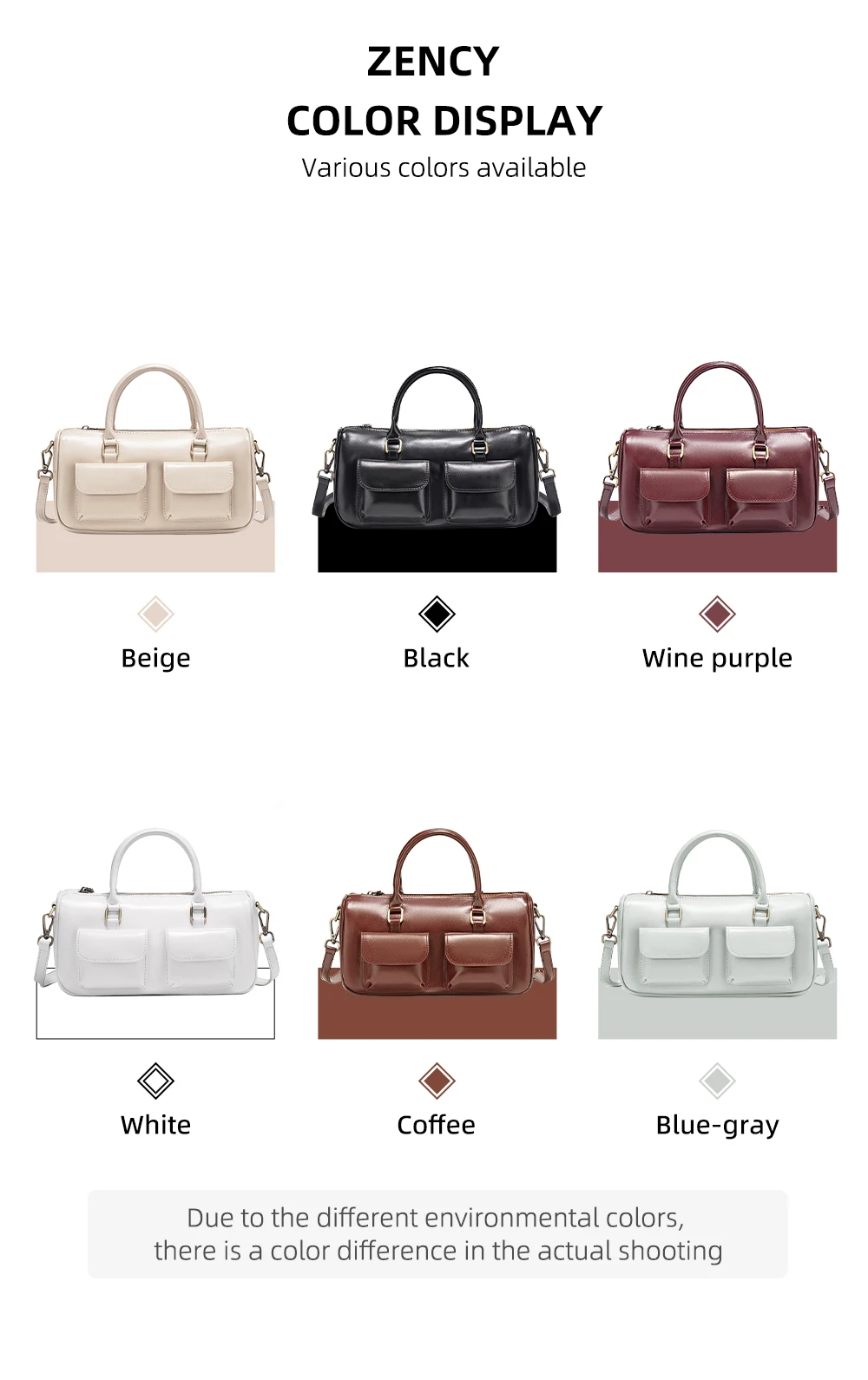 Zency Cowhide Leather Designer Handbag Women Shoulder Bag Multi-functional Crossbody Bags