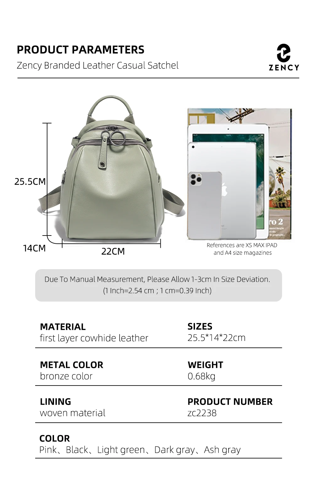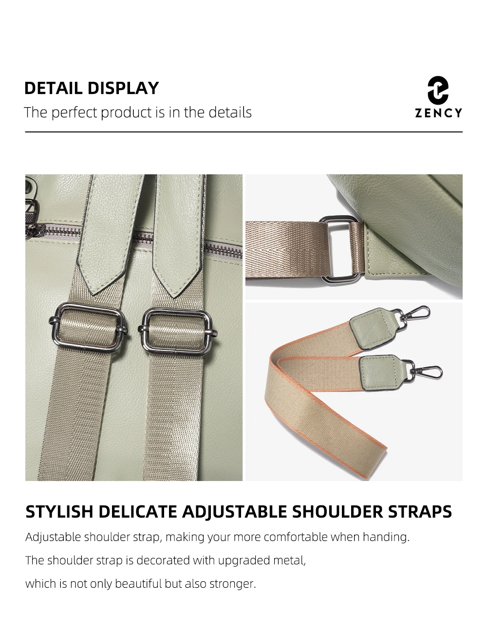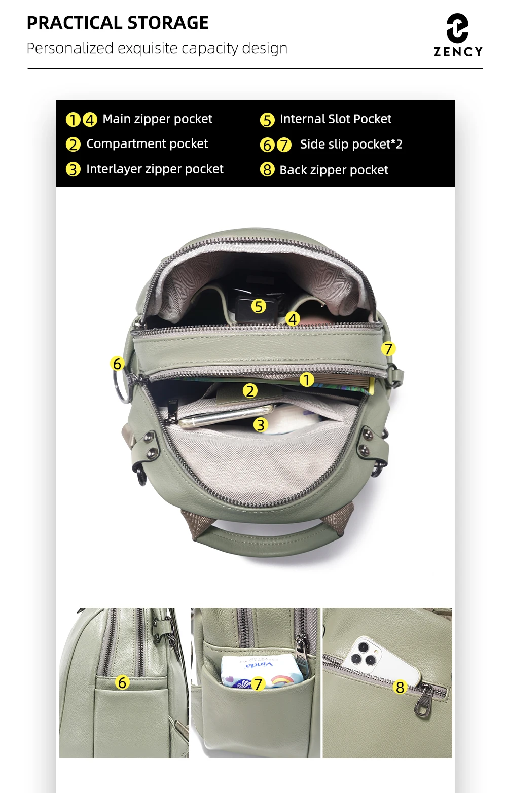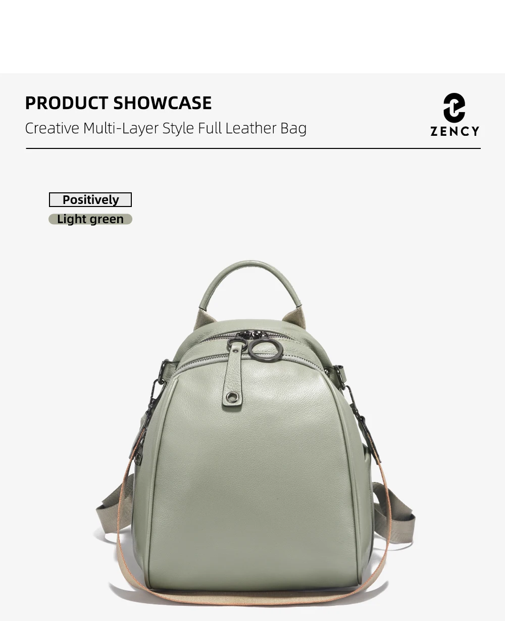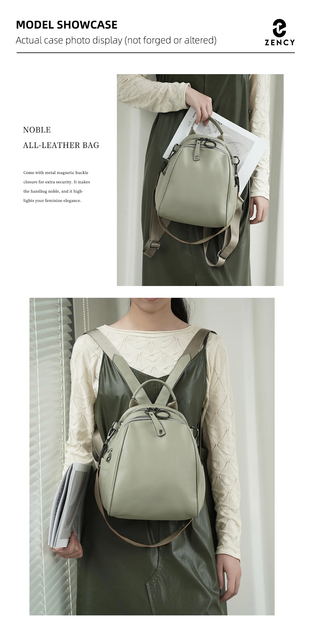 Zency Women's Soft Genuine Leather Travel Backpack Large Convertible Knapsack Multi-compartment