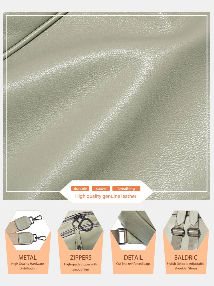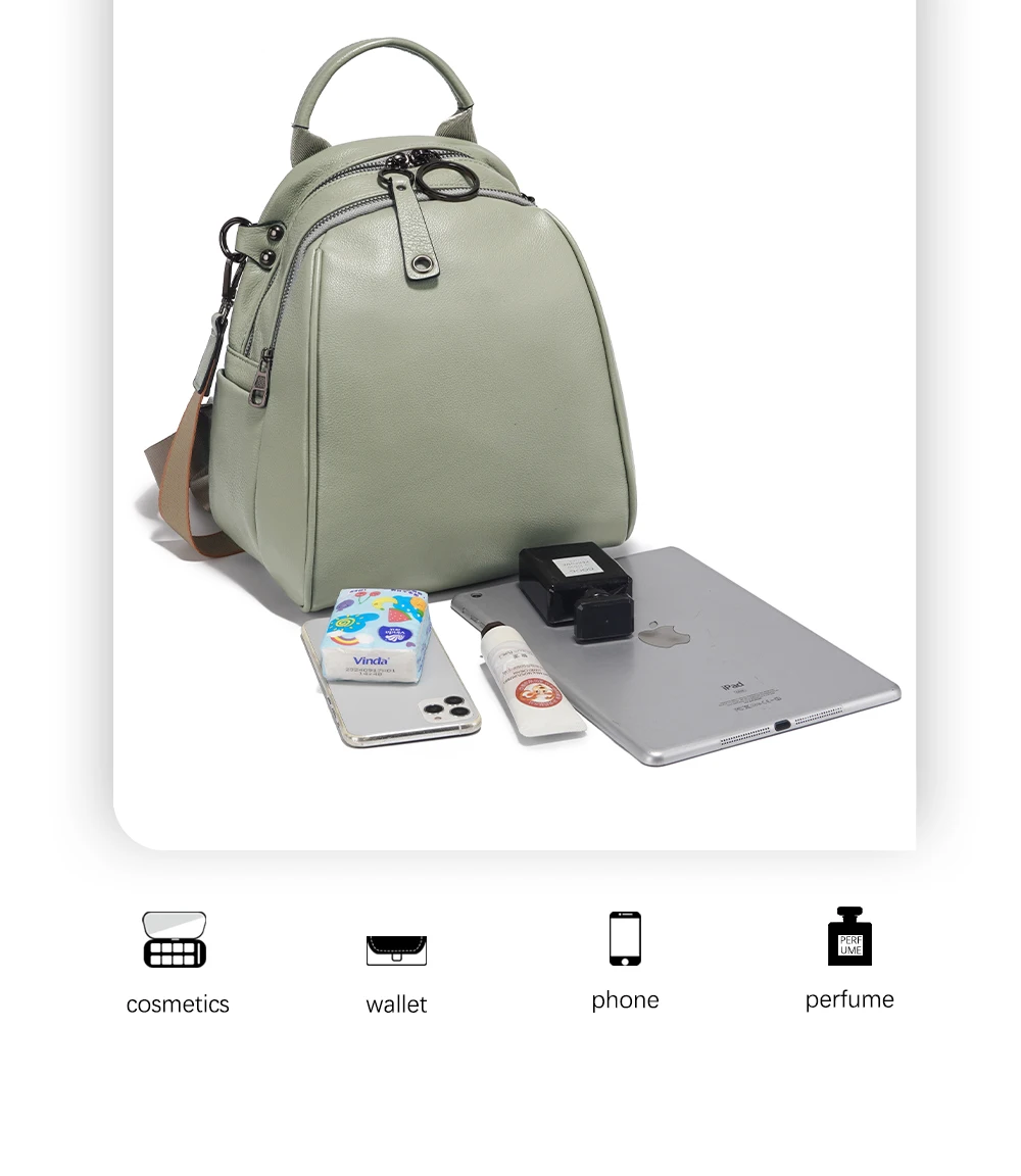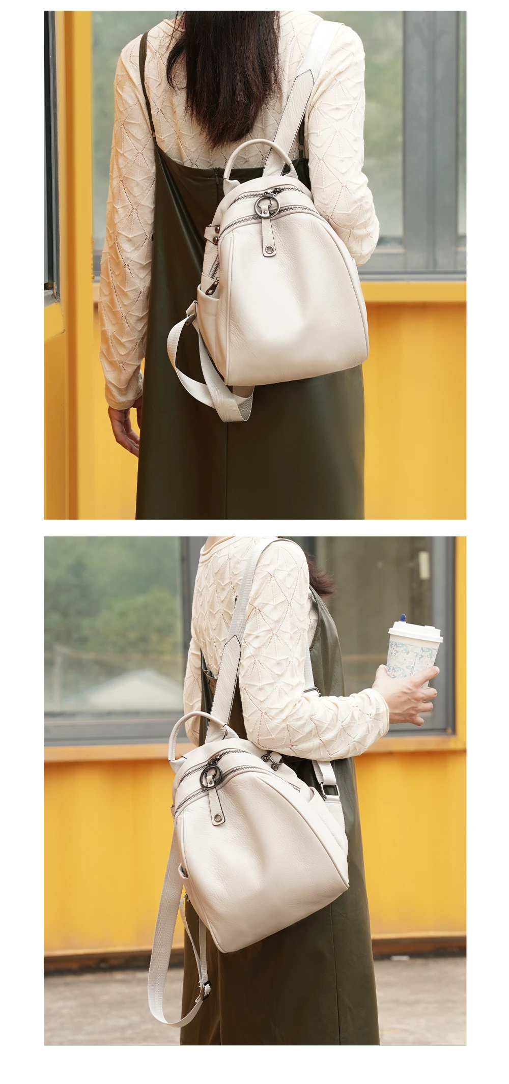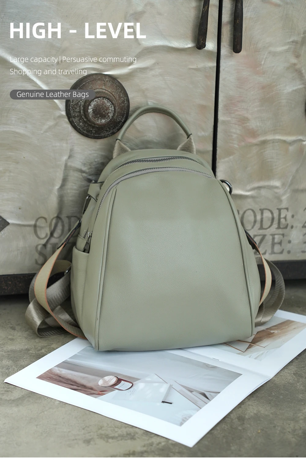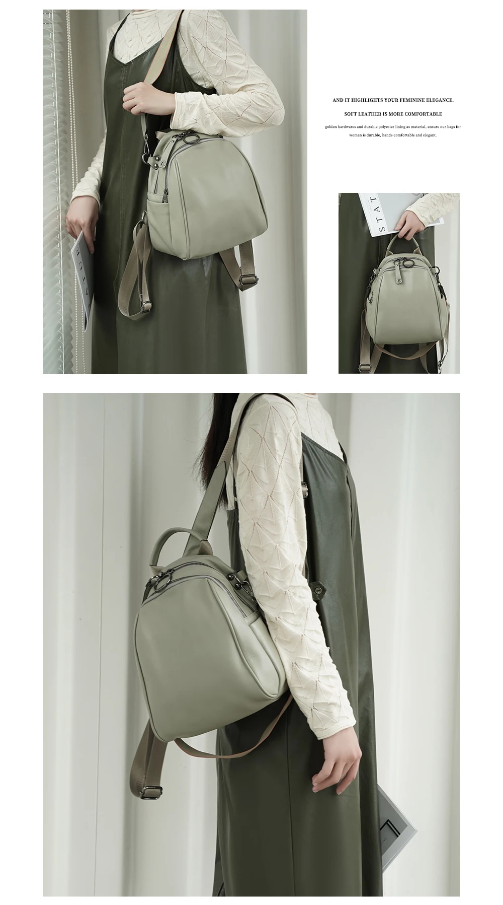 Zency Women's Soft Genuine Leather Travel Backpack Large Convertible Knapsack Multi-compartment